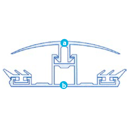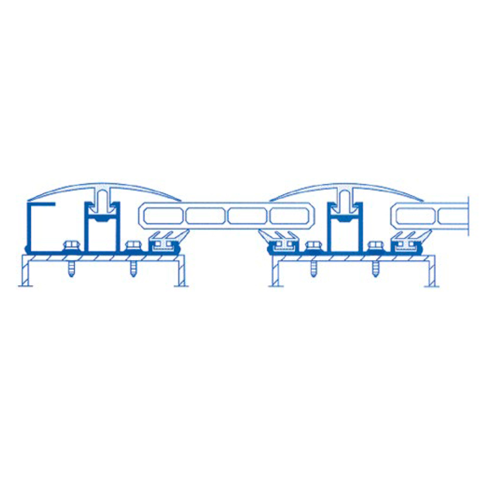 Het aluminium tussenprofiel standaard bestaat uit 2 delen. De bovenkant is een afdeklijst die je erop kunt klikken en is gemaakt van pvc. De onderkant is het middenprofiel met ribbels, gemaakt van aluminium. Beide hebben een rubberen rand om een goede aansluiting op de plaat te waarborgen en een waterdichte constructie te creëren.